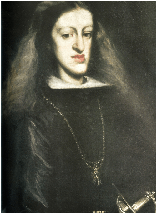 – Al cuidado en principio, eso sí, de una auténtica piltrafa, su hijo Carlos II, que tiene a la muerte del padre solo cuatro años y que no comenzará a andar hasta los catorce.