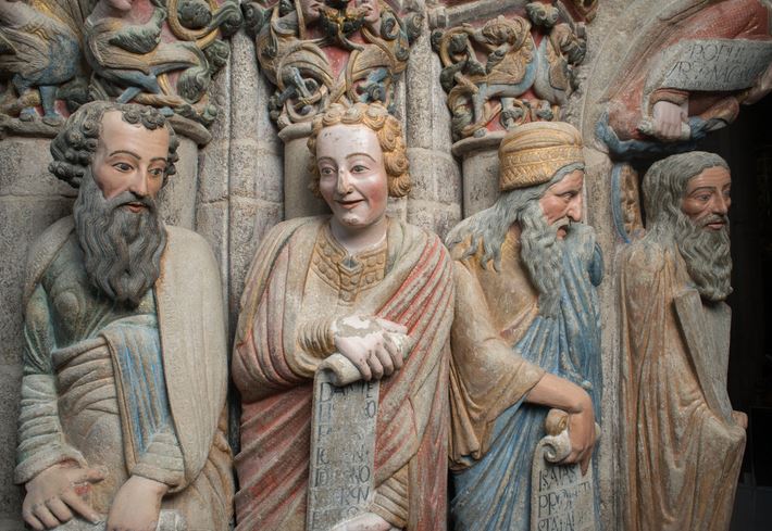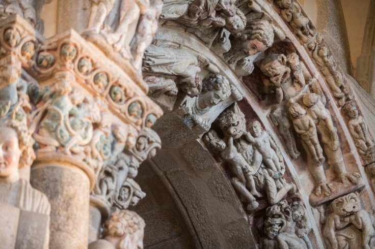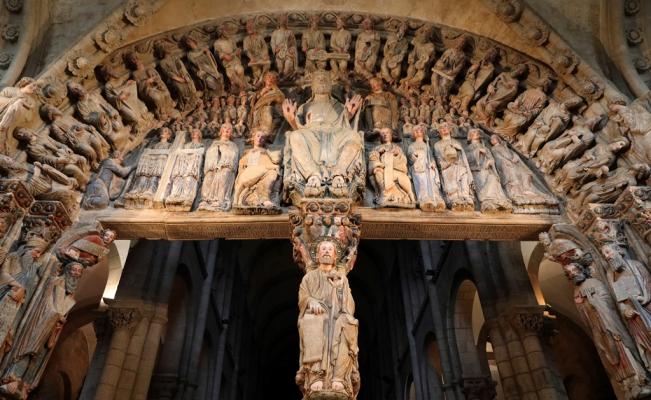 Efectivamente, la de Santiago de Compostela, y precisamente en una de sus cumbres artísticas universales que es, su Pórtico de la Gloria.
