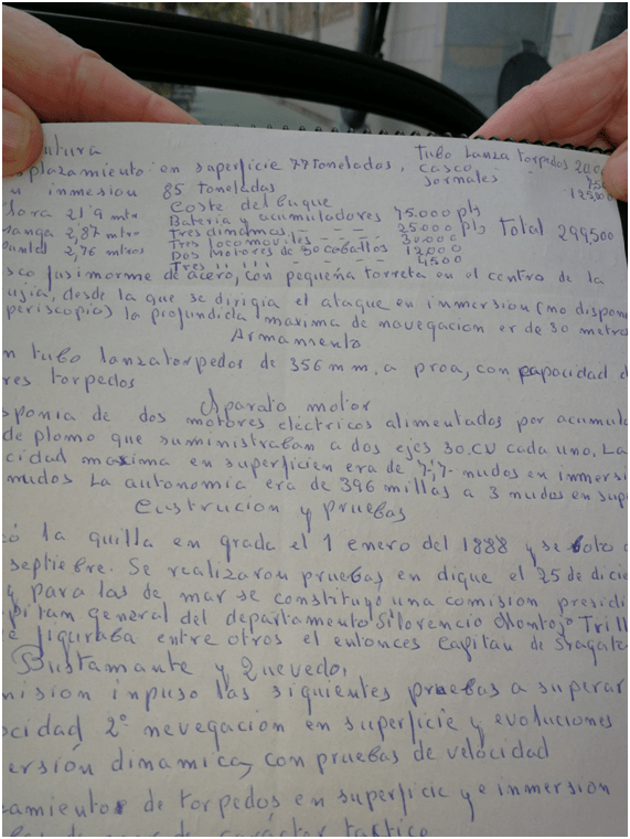 Noveno.- Sin que pueda ser algo determinante, también puede pensarse en la importancia que pudiera tener en aquel momento, y como pueda ser juzgado, que un oficial de no muy alto rango en el estamento militar, fuera visto viajando por toda Europa, sin el inflexible rigor al que están acostumbrados los marinos, comprando materiales, motores, y todo tipo de elementos necesarios para la construcción del submarino.
